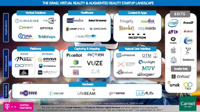 Israeli Virtual Reality and Augmented Reality Startup Map.. The map includes only companies that have raised a seed investment of around $500k or more. Feel free to view and download from SlideShare